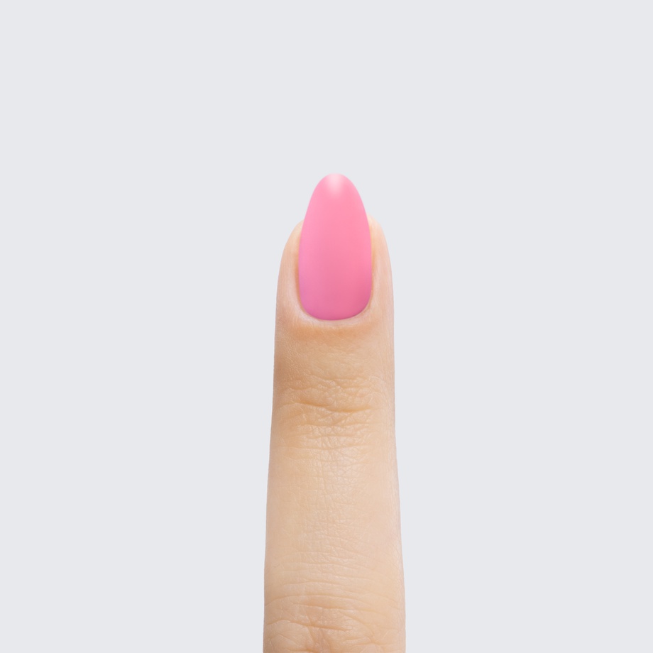 Pastel bubble gum pink. Neon. Bright. Light. Opaque. Cool undertone.